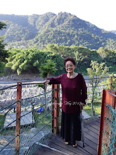 With a little assurance and encouragement, Mom made it midway onto the scenic suspension bridge, A lil'cheat just for a snapshot, LOL